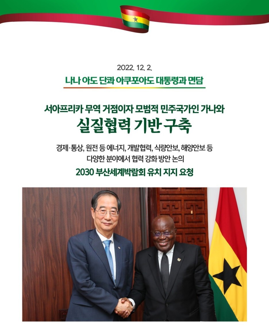 금일 포스팅 내용은 한덕수 국무총리께서 아프리카 2개국 " 가나"를 순방하셨습니다.